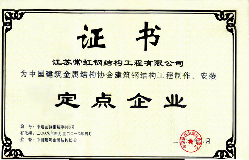 定點(diǎn)企業(yè)證書(shū)