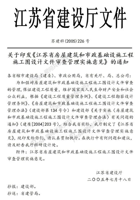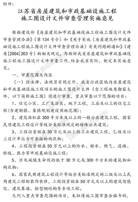 關(guān)于印發(fā)《江蘇省房屋建筑和市政基礎(chǔ)設(shè)施工程施工圖設(shè)計(jì)文件審查管理實(shí)施意見(jiàn)》的通知